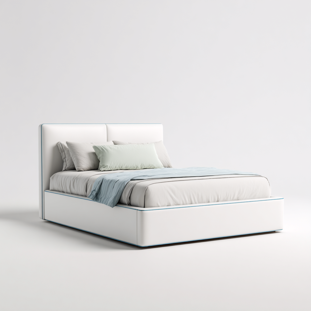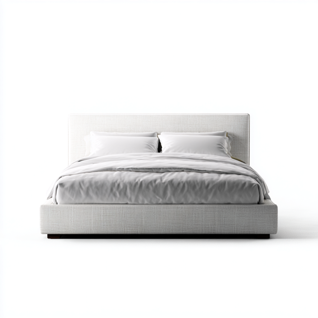 Letto matrimoniale - Tessuto - 214x176x106 cm - Bianco-Beige - Design moderno soft