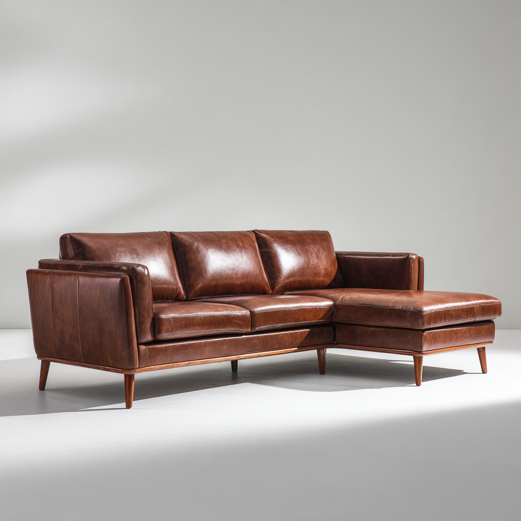 Rivestimento in pelle di colore marrone, selezionata per la sua superficie liscia e l'aspetto elegante. La struttura è progettata per garantire solidità e supporto costante, mantenendo una buona stabilità nel tempo.